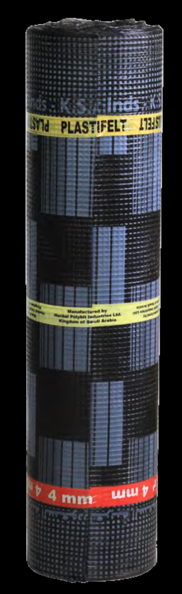Plastifelt is a polymer modified bituminous waterproofing membrane, manufactured from a mixture of bitumen and selected polymers, which are blended together to obtain good waterproofing properties. The bitumen compound also exhibits high heat and UV resistance properties. The polymerized bitumen is coated on to a dimensionally stable reinforcement core of non woven glass fiber carrier.