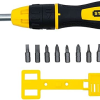 | Product code (length x width) | 0-63-022 25 pcs Pistol Grip Ratchet SD 6 Large Bits: Flat: 5,6,7mm – Philips: Ph1,2,3, 24 Standard bits: Philips: #0, #1, #2 (X3), #3 – Flat: 5,6,7mm – Hex Tips: 2,3,4,5,5.5,6mm – S1, S2, S3 – Torx: T10, T15, T20, T25, T27, T30; 6 Sockets: 5,6,8,9,10,11mm |